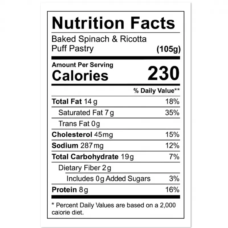 Inicio > Food and Beverage > Frozen Foods > Frozen Snacks & Appetizers > PUFF PASTRY STUFFED WITH SPINACH & RICOTTA.PRE-COOK E